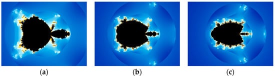 - Agarwal, S.; Srivastava, G.; Negi, A. Dynamics of Mandelbrot set with transcendental function. Int. J. Adv. Comput. Sci. Appl. 2012, 3, 142–146. [Google Scholar] [CrossRef]