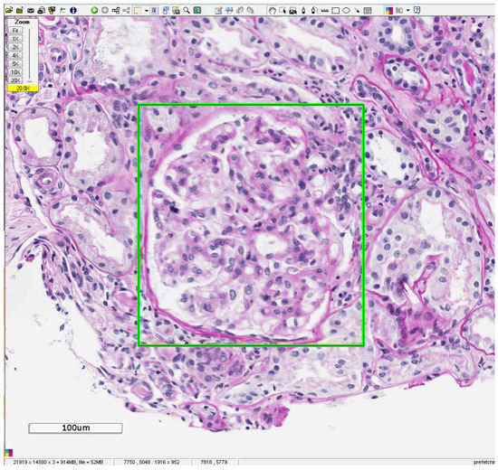 The process of labeling was performed manually using the Aperio ImageScope tool, as shown in Figure 1. As a result, the coordinates of the different Glomerulus detected by the pathologists were available, so that the Glomerulus patches could be cropped from the images.