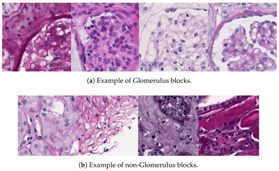 Figure 4 shows an example of Glomerulus and non-Glomerulus blocks used to train the model.