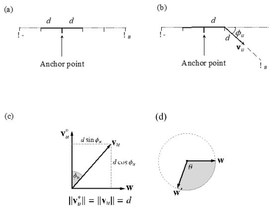 - Scale w′ to the radius of the locus circle and translate it along the reference vector, to arrive at the final step vector, , as (2):