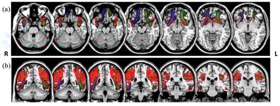 - Yendiki, A.; Panneck, P.; Srinivasan, P.; Stevens, A.; Zöllei, L.; Augustinack, J.; Wang, R.; Salat, D.; Ehrlich, S.; Behrens, T.; Jbabdi, S.; et al. Automated probabilistic reconstruction of white-matter pathways in health and disease using an atlas of the underlying anatomy. Front. Neuroinform. 2011, 5, 23. [Google Scholar] [CrossRef] [PubMed]