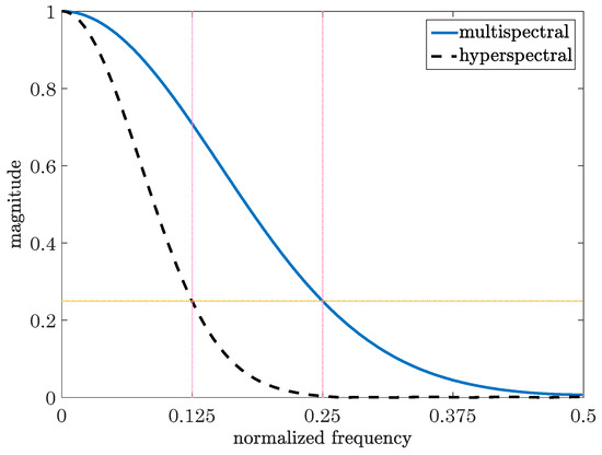 In some works on multispectral–hyperspectral image fusion, it is assumed that each pixel on the hyperspectral image, which has a lower spatial resolution than the target image, is the average of the pixels of the same area on the target image [25,26,27,28,29]. Clearly, the size of this area depends on the downsampling ratio. Based on this pixel-aggregation assumption, one can divide the problem of fusing two multiband images into subproblems dealing with smaller blocks and hence significantly decrease the complexity of the overall process. However, it is more realistic to allow the area on the target image corresponding to a pixel of the hyperspectral image to span as many pixels as determined by the point-spread function of the sensor, which induces spatial blurring. The downsampling ratio generally depends on the physical and optical characteristics of a sensor and is usually fixed. Therefore, spatial blurring and downsampling can be expressed as two separate linear operations. The spectral degradation of a panchromatic or multispectral image with respect to the target image can also be modeled as a linear transformation. Articulating the spatial and spectral degradations in terms of linear operations forms a realistic and convenient forward observation model to relate the observed multiband images to the target image.