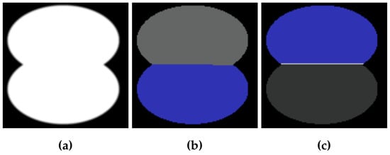The watershed segmentation algorithms are based on the representation of an image in the form of a topographic relief, where the value of each image element characterizes its height at this point. These algorithms can process not only 2D images, but also 3D images, so the term element is used in the paper to combine the terms pixel and voxel. For a better outcome, watershed segmentation is often applied to the result of the distance transform of the image rather than to the original one [7,37]. Thus, the relief consists of low-lying valleys (minimums), high-altitude ridges (watershed lines) and slopes (catchment basins). The concept of plateau (an area with the same height of elements) is also used. The main task in this segmentation method is to determine the location of all catchment basins and/or watershed lines, since in this case, each catchment basin is considered to be a separate segment of the image. In some tasks, we only need to get the segments, but in some, we also need to know the boundaries of each segment. Accordingly, watershed algorithms with and without watershed line construction were proposed. In Figure 1, we can see the differences in the result of segmentation with and without the watershed line construction, the line that divides the two final segments. There are two main approaches to finding these watersheds: by flooding and by rain falling [35,38].