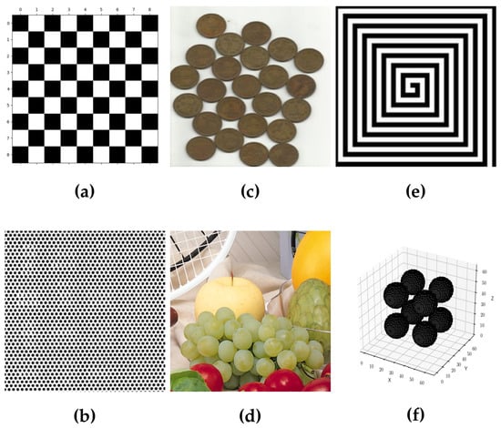 Some of the images were obtained from USC-SIPI [54] (cells), OpenCV tutorial [55] (coins), CAE University of Wisconsin [56] (fruits), and others were generated (board, maze, balls).