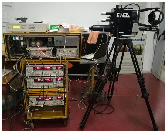 The ITR monochromatic laser scanner (Figure 3a) is employed for inspections under a superficial layer with a thickness of up to some hundreds of microns by the processing of backscattered data. This system uses an IR source with a wavelength of 1550 nm and a power of some tenths of mW/mm2. The optical setup of this system consists of an aspherical lens for focusing the launching laser beam and a receiving doublet lens (50 mm in diameter, and 150 mm in focal length) for the detection of receiving signals from up to 10 m of distance, with a laser spot size of 4–5 mm and a power density of less than 1 mW/mm2, as can be calculated by Equation (9):