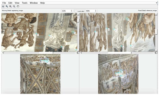 Procedure for the registration of textures by picking similar points for the elaboration of the 3D model of the San Brizio Chapel. (Elaboration carried out by ENEA team with the custom software itrAnalyzer).
