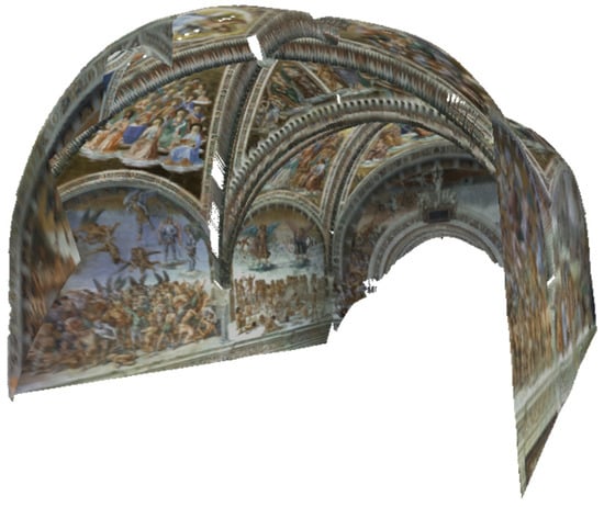 3D model of the San Brizio Chapel obtained with the RGB-ITR scanner. The colors are uniform without shadows, unlike photographs (Figure 9). (Elaboration carried out by ENEA team with the custom software itrAnalyzer).