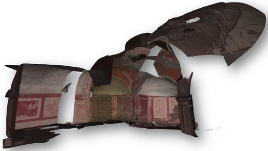 - Micoli, L.; Guidi, G.; Angheleddu, D.; Russo, M. A multidisciplinary approach to 3D survey and reconstruction of historical buildings. In Proceedings of 2013 Digital Heritage International Congress (Federating 19th Int’l VSMM, 10th Eurographics GCH, & 2nd UNESCO Memory of the World Conferences; Plus Special Sessions from CAA, Arqueológica 2.0, Space2Place, ICOMOS ICIP & CIPA, EU Projects, et al.). UNESCO/IEEE/EG; IEEE: Marseille, France, 2013. [Google Scholar]