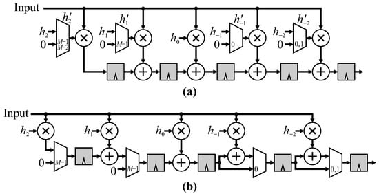 - Benkrid, A.; Benkrid, K. Novel area-efficient FPGA architectures for FIR filtering with symmetric signal extension. IEEE Trans. Very Large Scale Integr. Syst. 2009, 17, 709–722. [Google Scholar] [CrossRef]
