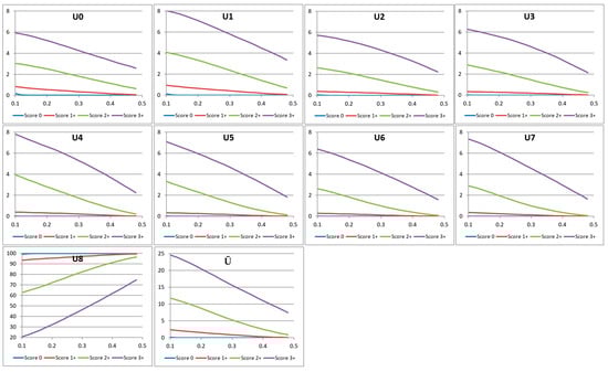 where, w and h denote the width and the height of the input image, respectively. The variations of the uLBP feature components Ui, i = 0, …, 8 and also the non-uniform component Ū for images with HER2 scores 0, 1+, 2+, and 3+ are shown in Figure 7.
