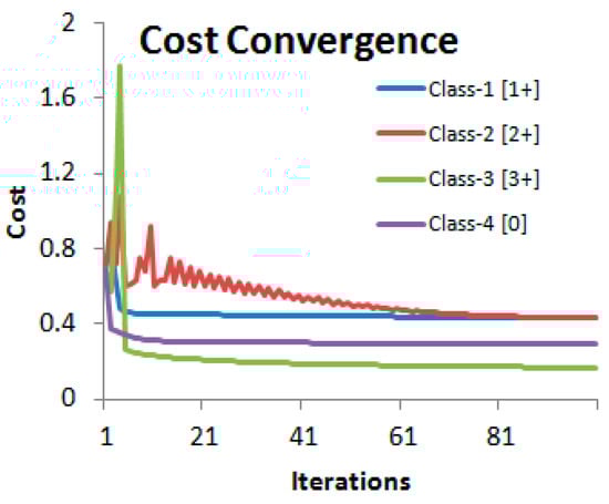 Convergence of the cost functions of the four-class logistic regression algorithm. Reproduced from [12] with permission.
