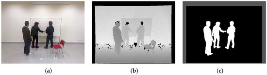 - Boucher, A.; Martinot, O.; Vincent, N. Depth Camera to Improve Segmenting People in Indoor Environments—Real Time RGB-Depth Video Segmentation. In Proceedings of the 10th International Conference on Computer Vision Theory and Applications, Berlin, Germany, 11–14 March 2015; Volume 3, pp. 55–62. [Google Scholar]