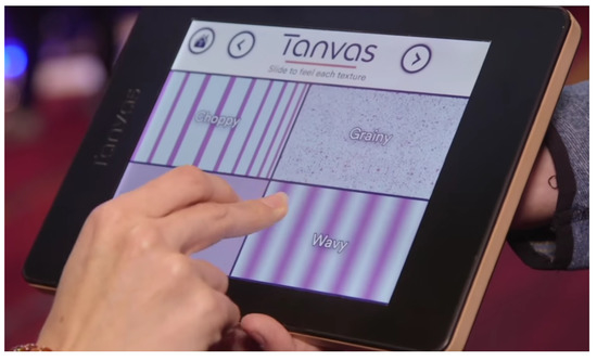 - Tanvas. TanvasTouch. Available online: https://youtu.be/ohL_B-6Vy6o?t=19s (accessed on 25 June 2018).