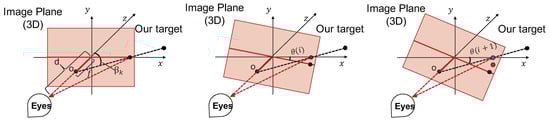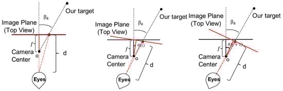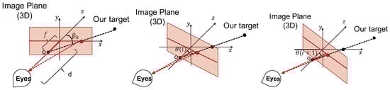 Suppose the target position with respect to the camera center is  at frame k while the camera focal length is f. The viewing distance of the viewer is d and the estimated camera position is . So, the observation angle of the target for the viewer at frame k is