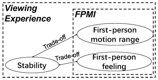 To evaluate the effectiveness of our measurements, we treated them as quality estimators of video stability and FPMI. We used videos and subjective test results from our earlier work [] to test if the results of our measurements aligned with the subjective scores. Since Ref. [] used a different video stabilization method, this experiment is independent of our motion editing step and simply considers how effective the VE/SVE is for measuring viewing experience. Note that the videos from Ref. [] were not synthetic, but captured from a First-Person camera.