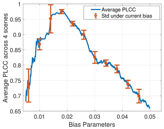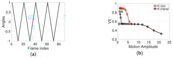 In contrast, our modified constraint (15) treats the SPEM as a closed-loop system. We recognize that the viewer can utilize the additional information (i.e., target shape, scene content) to track targets. The eye movement can be accelerated before the next frame is shown which makes the retinal slip change and makes the  positive and fall into the desired region. This is the reason that we introduced the absolute values in Equation (15). However, there is no widely recognized mathematical model to adjust for retinal slip [], although most studies agree that the procedure relates to a feedback control that has constant parameters based on visual content, scene understanding, or the experiences of motion patterns [,,,,]. As a result, to describe the characteristic of the feedback control and make our model compatible, we include an unknown bias parameter b. Later in Section 8, we design a subjective test based on real scenes to help us learn about the bias parameter. The learned parameter makes our model accurately describe the SPEM in practical situations.