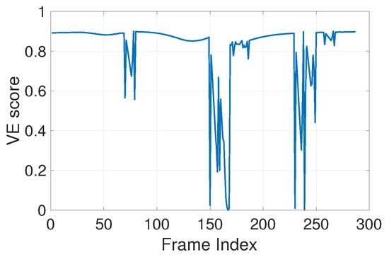 The VE score indicates the fraction of frames can be tracked using SPEM given the current camera motion of yaw, pitch or roll. In Section 7, we show how it can be applied to different components of First-Person Motion to obtain either the stability or FPMI of a FPV. Here, however, we show how a single VE score is computed for a given motion.