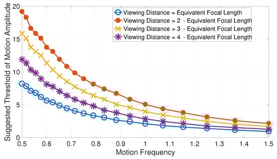 The drawback of these stability measurements is that they cannot precisely predict the subjective stability. The measurements used by video stabilization techniques assume that fast motion is the reason for instability. However, the numerical relationship between motion speed and instability is unknown. Also, it is well-known that PSNR does not have high correlation with subjective quality scores [,]. In addition, MV-MSE only measures the relative stability between the original motion and the intentional motion. Moreover, the intentional motion is just estimated, because the actual intended motion is unknown. In this paper, we show that the subjective stability of intentional motion strictly depends on its amplitude and frequency characteristics which means intentional motion is seldom completely stable. As a result, MV-MSE cannot accurately measure the subjective stability of videos.