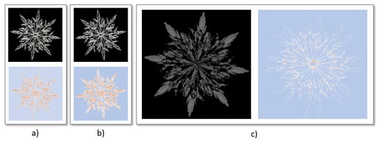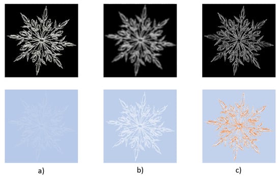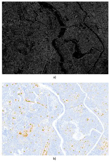 The final example is the examination of satellite images []. In the presented example, the Tokyo area was captured. The results show a small part of the captured image. It has the size of 3000 × 2000 pixels and contains two rivers and a variety of houses. The overall goal for the presented image is to identify different types of buildings. Here, it is important to extract the edges of buildings in a series of pre-processing steps.