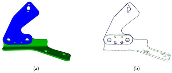 Edgelets extraction: (a) example of CAD part, and (b) edgelets extracted from this CAD part.