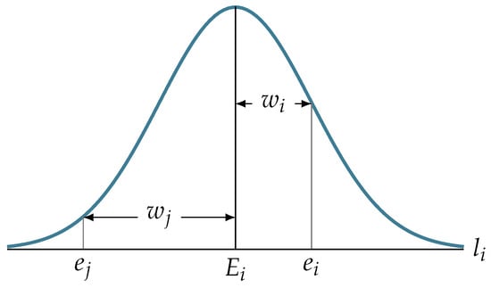 For each edgelet in the 3D CAD projected onto the image plane, we are interested in finding an image location that contains a real change in image intensity (a real edge). For this, we first produce an edge image and search for candidate locations along a search line, , that is obtained as described in step 3. Each edge location along the search line that is within a prespecified distance from the location of the projected edgelet is weighted according to a Gaussian function of the distance of the edge point from the location of the projected edgelet. is a weight of the edge , and is a weight of the edge (see Figure 12). Instead of simply counting matched edgelets, these weights will be added up in the final score. We do this to favorize the edgelets matched with very close real edges and penalize those matched with real edges that are far away.