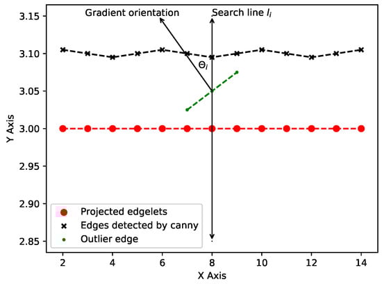 Challenges due to outlier edges, such as those due to image noise and edges arising from features that do not belong to the inspection element, when searching for an image edge corresponding to the projected edgelet.