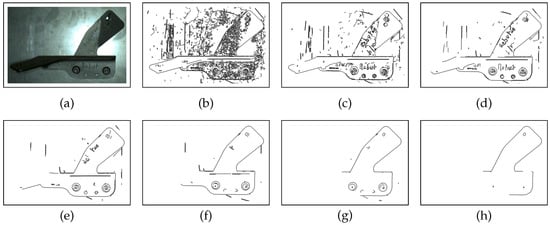 Images of Canny algorithm results (a). Images (b–h) have been obtained using the high and low threshold values specified in Table 4.