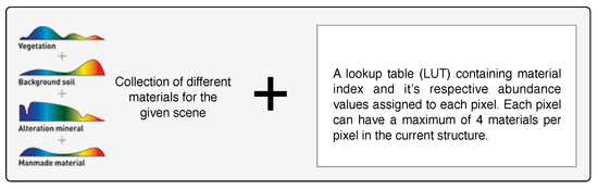 Hyperspectral imagery (HSI) contains detailed spatial and spectral information of a natural scene. HSI has been traditionally deployed widely for surveillance and reconnaissance in agricultural, earth observations and defence/military applications [1]. In the latter case, particularly in counter-countermeasures applications, there are high demands on the knowledge about the detectability of targets when they are embedded in certain environments, for example, the assessment of the detectability of diseased plants in a field or the development of sophisticated camouflage materials for specific terrain and environment. In principle, this can be achieved through repeated costly and labour intensive experimental trials until the desire result is obtained. Alternatively, this can be accomplished through effective hyperspectral scene simulation technique, which is capable to reconstruct the scene and at the same time to “inject” foreign materials into the environment [2,3]. The ultimate usefulness of a scene simulator is its ability to simulate the scene faithfully, such that the spectral and spatial content of the simulation is as realistic as possible. This, in turn, will require knowledge of the material property in the scene, such as the types of plants and their optical characteristics, to be known precisely as the input of HSI simulator. In many cases, the detailed material properties of the scene are not known and typically only the broadband RGB, or the multispectral image (MSI) of the scene, is available [4,5]. One approach to solving the problem is to reconstruct the materials of the scene through a learned dictionary to deduce the endmember (EM) characteristics of the scene through an unmixing algorithm [6,7], Equation (1).