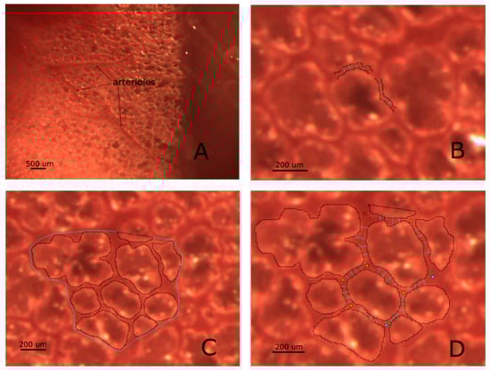 - Crisafulli, B.; Boschetti, F.; Venturoli, D.; del Fabbro, M.; Miserocchi, G. A semiautomatic procedure for edge detection of in vivo pulmonary microvessels and interstitial space. Microcirculation 1997, 4, 455–468. [Google Scholar] [CrossRef]