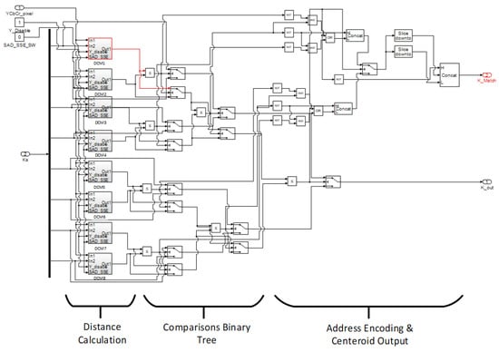 The inclusion of advanced frame analysis techniques in live video streams has now become mandatory in modern smart surveillance systems. Thus, the conventional image processing pipeline of video cameras has transformed in the recent years to include some form of object, scene, and/or event analysis mechanism as well [1]. Strict real-time and minimal power consumption constraints, however, limit the number and the complexity of operations that can be included within the camera modules [2]. Thus, some pre-processing tasks, such as motion estimation, image segmentation, and trivial object detection tasks have attracted the attention of contemporary researchers [3]. Furthermore, the increasing complexity of computer vision systems has led designers to resort to higher-level programming and synthesis tools, to shorten the design time. In this regard, Xilinx High-Level Synthesis (HLS) [4] and Simulink Hardware Description Language (HDL) Coder [5] are two widely cited tools. The latter is particularly suitable for the design of large computer vision systems, since it incorporates extensive functional verification and the ability to compare with built-in standard algorithms. Thus, the HDL coder supports quick synthesis and the functional verification of a large number of image processing algorithms, such as custom filtering, colorspace conversion and image statistics collection, etc. However, the current toolbox version lacks the explicit support for image segmentation tasks. To this end, we have developed a Simulink model to extend the capability of this toolbox to support this vital function. Although, various advance algorithms for scene segmentation have been put forward by researchers in recent years [6,7], we have chosen “Online K-Means” [8,9] to be incorporated in our proposed hardware, to keep logic resource utilization at minimum. Furthermore, it has been demonstrated that the use of weighted averaging in the place of moving averaging leads to a reduction in logic resource requirements, without compromising the result precision. Thus, the contributions of the conducted work can be summarized as follows:
