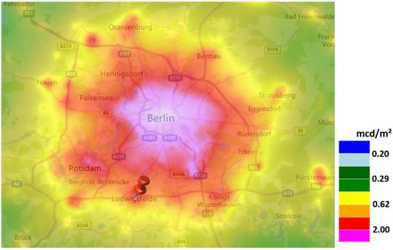 - Jechow, A.; Hölker, F.; Kolláth, Z.; Gessner, M.O.; Kyba, C.C.M. Evaluating the summer night sky brightness at a research field site on Lake Stechlin in northeastern Germany. J. Quant. Spectrosc. Radiat. Transf. 2016, 181, 24–32. [Google Scholar] [CrossRef]
