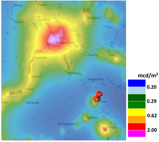 - Posch, T.; Binder, F.; Puschnig, J. Systematic measurements of the night sky brightness at 26 locations in Eastern Austria. J. Quant. Spectrosc. Radiat. Transf. 2018, 211, 144–165. [Google Scholar] [CrossRef]