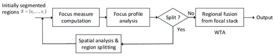 18], quadtree methods require a metric to determine whether a block will be WTA (Winner-Take-All)-fused or decomposed into four smaller ones. However, they might suffer from over-segmentations into smaller regions, due to regular quad decomposition for a region. Using this method, their works were focused on fusion from two images only and no experimental reports were given for extension to multi-focus image sets whose number of images is larger than 2.