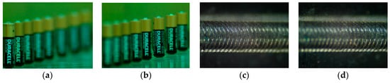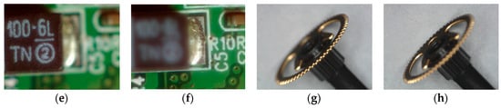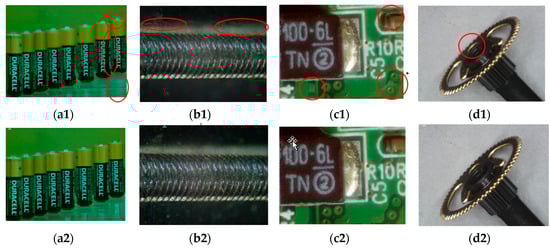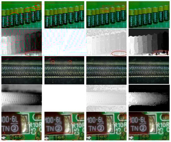 Figure 9, the four test image sets include: “Battery” (65 images), “Screw” (48 images), “PCB” (48 images), and “Tool” (7 images), all of 640 × 480 pixels. The parameters are set empirically as: