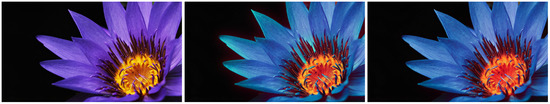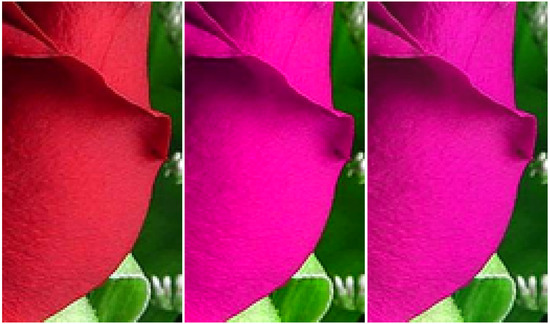 For the most part, people with CVDs can live completely normal lives. However, in some situations, they may experience certain disadvantages [5]. A considerable effort has been undertaken for coming up with techniques to improve the ability of CVD people to differentiate colour better through optical filters (https://enchroma.com/, visited 28 October 2020), introduction of lost information through sensory substitution devices [6], and even a medical ‘cure’ has been proposed [7]. For the display of digital images, so-called daltonisation techniques, i.e., recolouring of images for increased visibility for CVD observers, have been proposed [8,9,10,11]. CVD simulation algorithms are often an important ingredient in the daltonisation algorithms. Most daltonisation methods use some form of a global recolouring scheme, but daltonisation methods highlighting only colour edges and details that are lost to CVD observers have also been proposed [12]. In a behavioural experiment, the methods of Anagnostopoulos et al. [8] and Kotera [10] were found to be the best performing ones available at the time [13]. A thorough review of global daltonisation methods, i.e., mappings in colour space not taking the local image content into account, was recently given by Ribeiro and Gomes [14]. For image-dependent daltonisation, recent contributions include Chatzistamatis et al.’s method for recoloring of art paintings guided by semantic segmentation [15], and Iqbal et al.’s use of sharpened wavelet bands and inpainting [16].