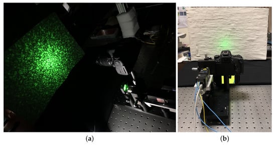 - Set the diffuser-to-object distance z so as the diffuser projects the laser beam to uniformly cover the chosen area. According to Equation (1), the wider we make the field of illumination, by increasing z, the larger will result the projected speckles.