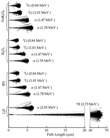 | 7Li (1.01 MeV) | α (1.78 MeV) | 7Li (0.84 MeV) | α (1.47 MeV) | ||