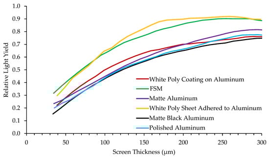 - Chuirazzi, W.; Craft, A. Measuring Thickness-Dependent Relative Light Yield and Detection Efficiency of Scintillator Screens. J. Imaging 2020, 6, 56. [Google Scholar] [CrossRef]