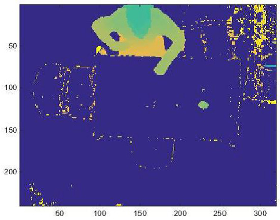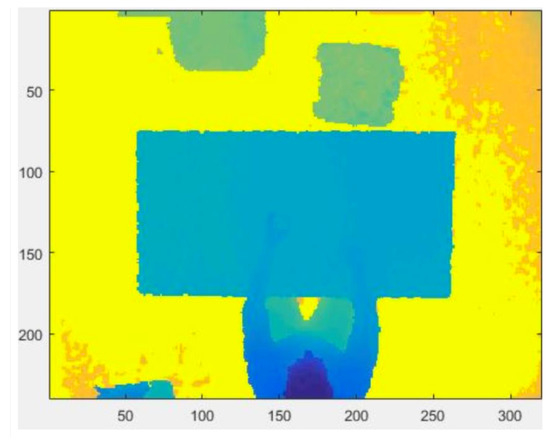 - Inevitably, the device introduces noise, especially in those points where there are large depth jumps within a few pixels of distance, such as on the table edges or on the border of the field of view. In order to remove the noise that affects the depth frames, a median filter with a 5 × 5 pixel window is used.