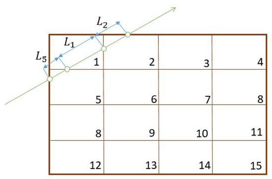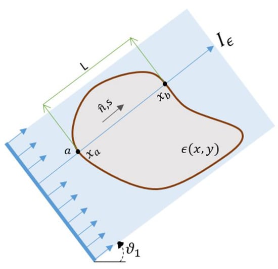 where, , and are the coefficients which are determined from the nodal values of strain in the element P. The measurement for the first ray in Figure 2 can be approximated by