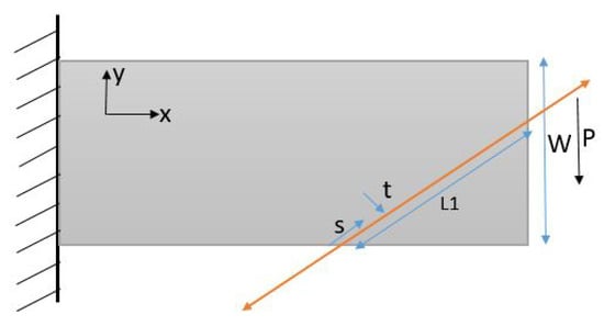 To demonstrate the performance of the proposed algorithm, a well-known 2D cantilevered beam problem is studied, which was previously examined by Wensrich et al. [31]. We consider the 2D strain field for beam geometry of the rectangle with the load P of 2 kN displayed in Figure 3. Material properties of the beam are representative of common steel, whereas other parameters are mentioned below. This beam problem is excellent for testing the algorithm since the analytical solutions to the strain field exist.