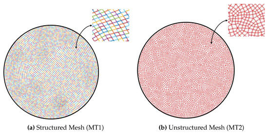 A finite element quadrilateral mesh is used to discretise the domain of the sample, as shown in Figure 6. Two types of mesh patches have been considered: structured and unstructured meshes. Reconstruction results can be seen with each mesh type in Figure 7 and Figure 8. Again, as mentioned before for the beam problem that the reconstructed strain field contains noise, which can be from numerical discretisation or measurements. Some techniques are explained in the next section to cope up with noise present in the strain field.