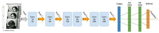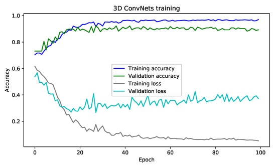 Furthermore, note that the 3D ConvNet architecture contains several deep layers that explain the duration of computing, which is rather long but converges quickly from the first epoch. Thus, in the multi-layer architecture, there are six layers for the 3D model ConvNets, four layers max-pooling [,], one flatten layer [], and two fully connected layers, followed by a Softmax [,] output layer (Figure 5).