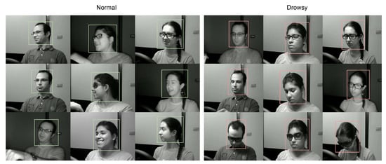 Samples of the two classes, normal and drowsy, of the NTHU-DDD dataset.