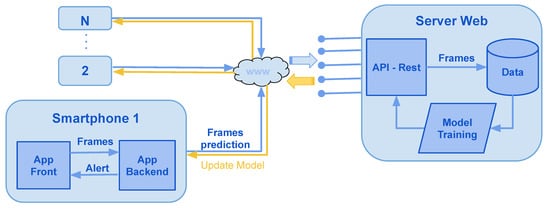 In a second step, and with the agreement the user, for each detected prediction, a feedback message will be requested to the user to label the sequences of images used. Then, a transfer will be executed to a web server, which retrieves the labeled images. These images will be saved and analyzed for the prediction module to trained. The objective of this step is to ensure that the system’s maintenance is scalable and to improve the accuracy of the model’s prediction.