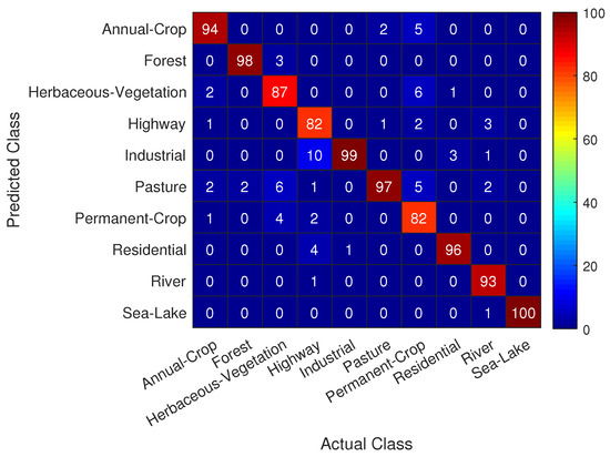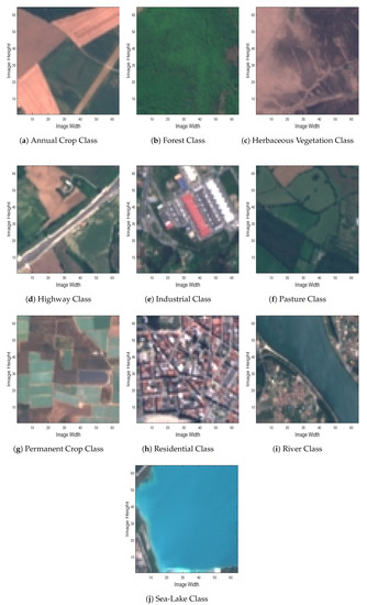 - Helber, P.; Bischke, B.; Dengel, A.; Borth, D. Introducing EuroSAT: A Novel Dataset and Deep Learning Benchmark for Land Use and Land Cover Classification. In Proceedings of the IGARSS 2018-2018 IEEE International Geoscience and Remote Sensing Symposium, Valencia, Spain, 22–27 July 2018; pp. 204–207. [Google Scholar]