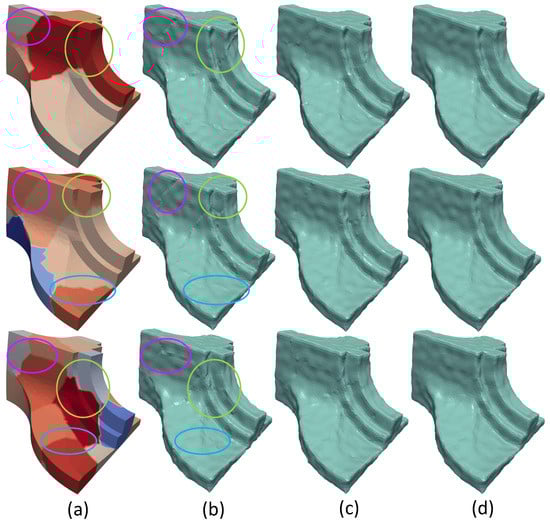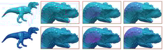 - Taubin, G. A Signal Processing Approach to Fair Surface Design. In Proceedings of the 22nd Annual Conference on Computer Graphics and Interactive Techniques (SIGGRAPH ’95), Los Angeles, CA, USA, 6–11 August 1995; ACM: New York, NY, USA, 1995; pp. 351–358. [Google Scholar] [CrossRef]
