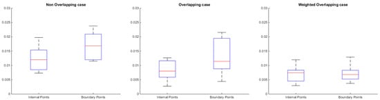 We show the distribution of error in the internal and the boundary points of each submesh. For this specific study we consider three different cases that are described below: