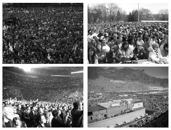 UCF_CC_50 is a dataset provided by Idrees et al. [12]. It contains 50 black and white images of very congested scenes of different resolution (from to ) extracted from the web, mostly from FLICKR. The dataset contains a total of individuals, averaging per image. Some of the images in the dataset are shown in Figure 2.
