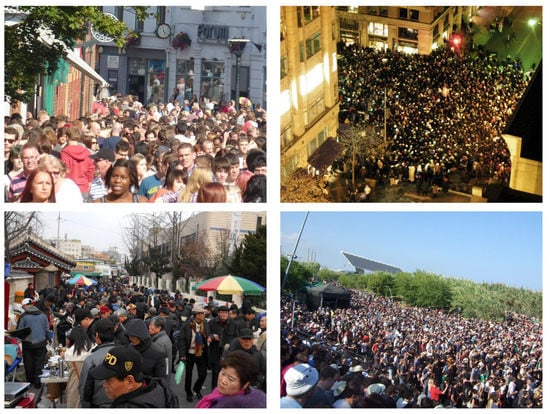 - Idrees, H.; Saleemi, I.; Seibert, C.; Shah, M. Multi-source Multi-scale Counting in Extremely Dense Crowd Images. In Proceedings of the 2013 IEEE CVPR, Portland, OR, USA, 23–28 June 2013; pp. 2547–2554. [Google Scholar]